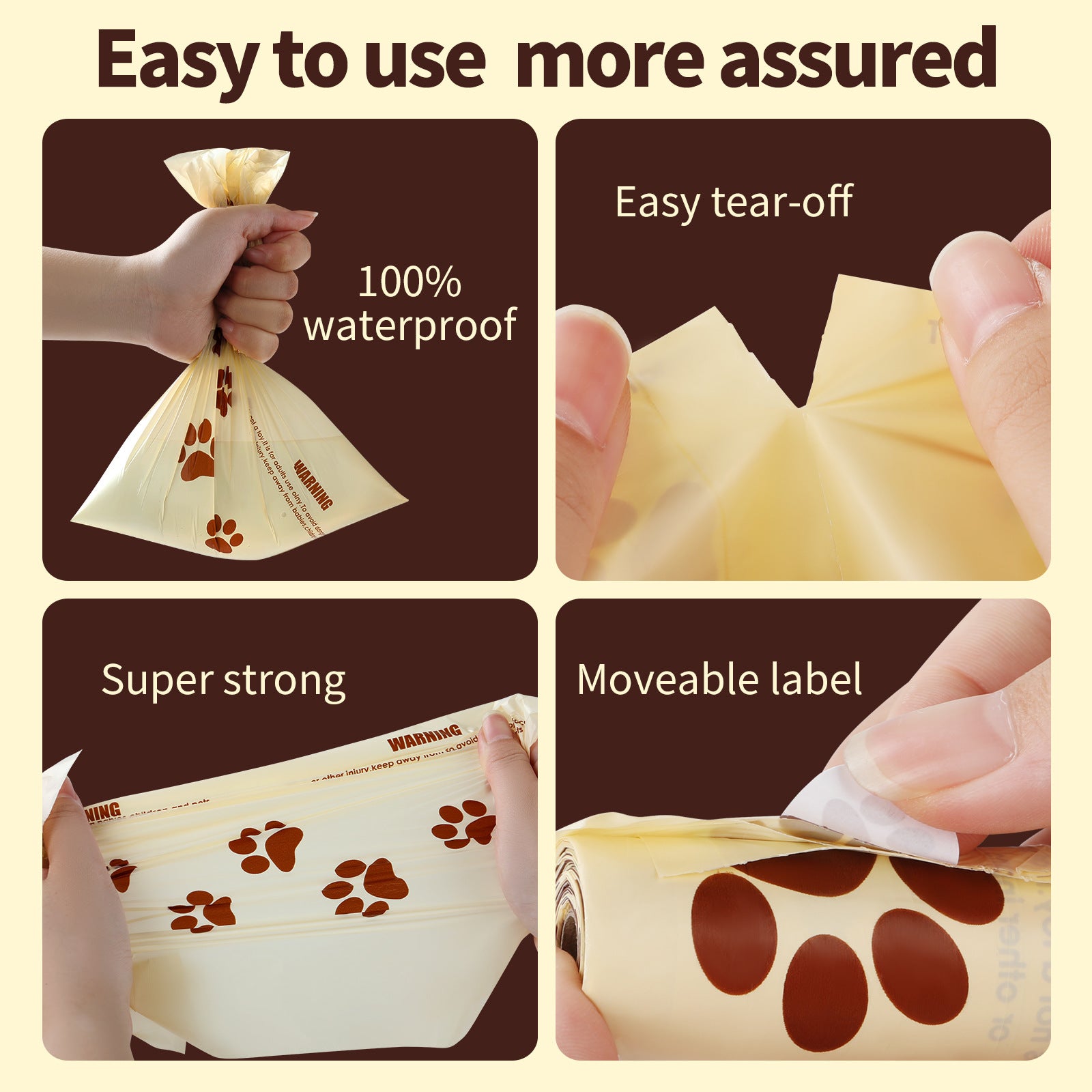 These poo bags come in a compact roll that is easy to store at home or carry on the go. The lightweight design and included dispenser make them the perfect walking companion. Keep them handy to avoid surprises during training or daily walks.