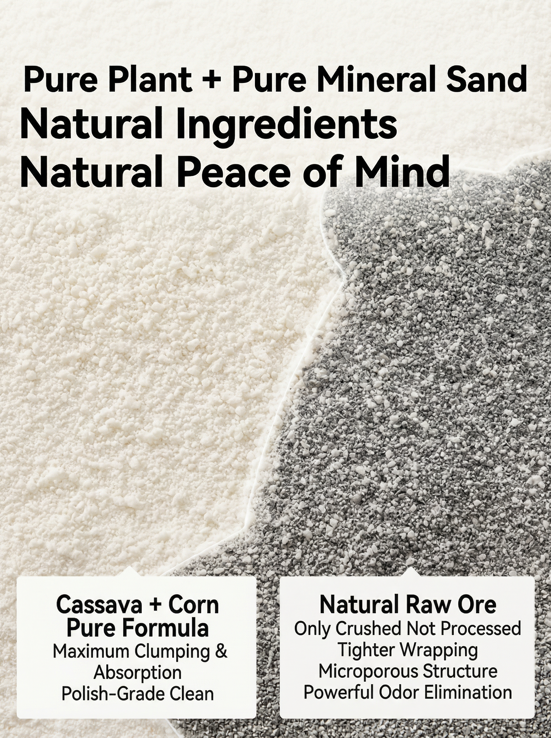 Hybrid Mineral + Tofu Formula. Super-blended with the power of mineral litter for absorption and odor-locking with the light weight and plant-based advantage of tofu litter.